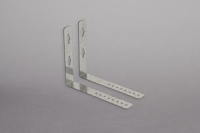 Seinäkiinnike 90°, sinkittyä teräslevyä Liteline-valaisinten asennukseen seinälle alas suunnattuna, 2 kpl