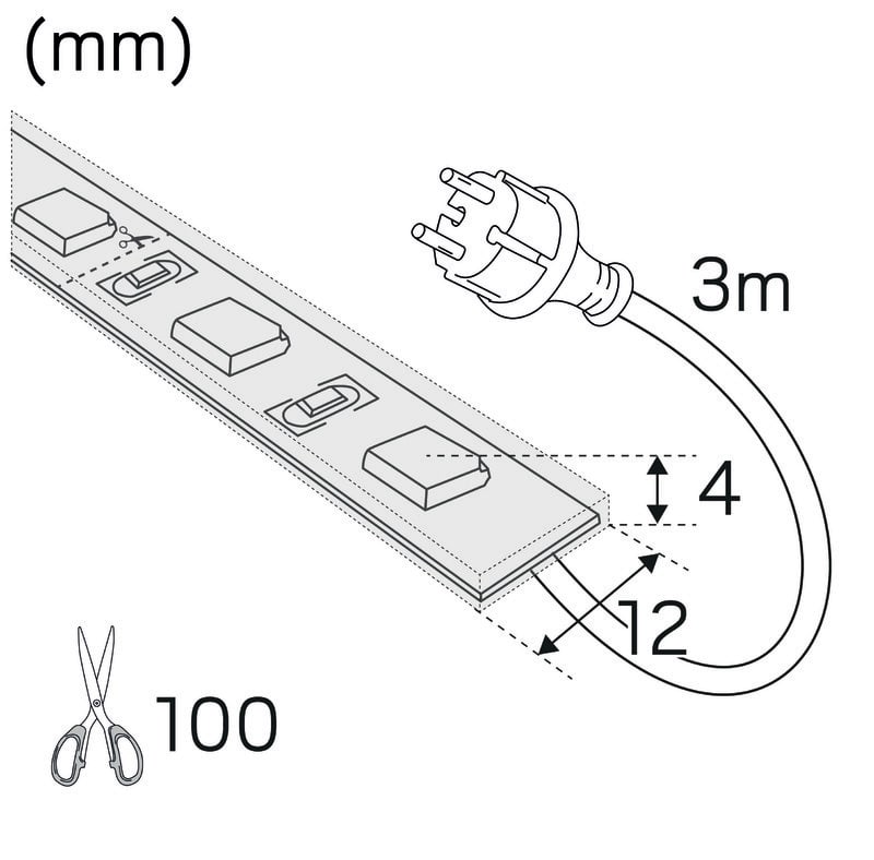 Asennus ei voisi olla helpompaa – ei tarvita ohjaimia tai rajoittavia toisiopuolen kaapelointeja. LEDstrip 230V kytketään suoraan 230VAC, ja sen katkaisuväli on vain 10cm. LEDstrip 230V luo tasaisen valolinjan ilman katkoksia. Toimitetaan metreittäin. Maksimipituus 30m asennusmateriaalista riippuen, tarkemmat tiedot asennusohjeessa. Asennus kiinteille ja vankoille pinnoille, kuten julkisivuihin ja räystäisiin. Sopii erinomaisesti useisiin alumiiniprofiileihimme. Näkyvässä asennuksessa suositellaan huurrettua kupua parhaan valaistuskokemuksen saavuttamiseksi. Liitosjohto ja asennustarvikkeet tilataan erikseen.