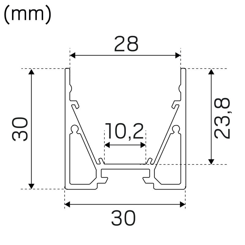Profiili Maxi U Alu 2m. 2000x30x30mm. Pinta-asennukseen tai ripustettavaksi.