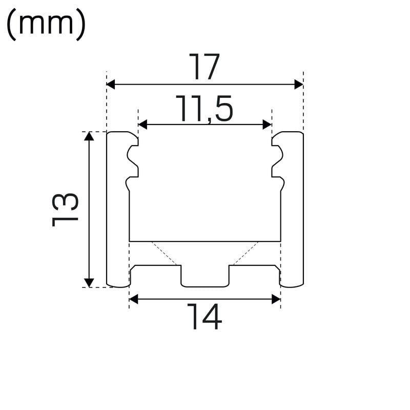 Profiili U Muovi 17mm 2m. sopii malliin LEDstrip HV & IP67 RGB. suurin leveys 12mm. 5 kpl esiporattua reikää ruuvikiinnitystävarten.
