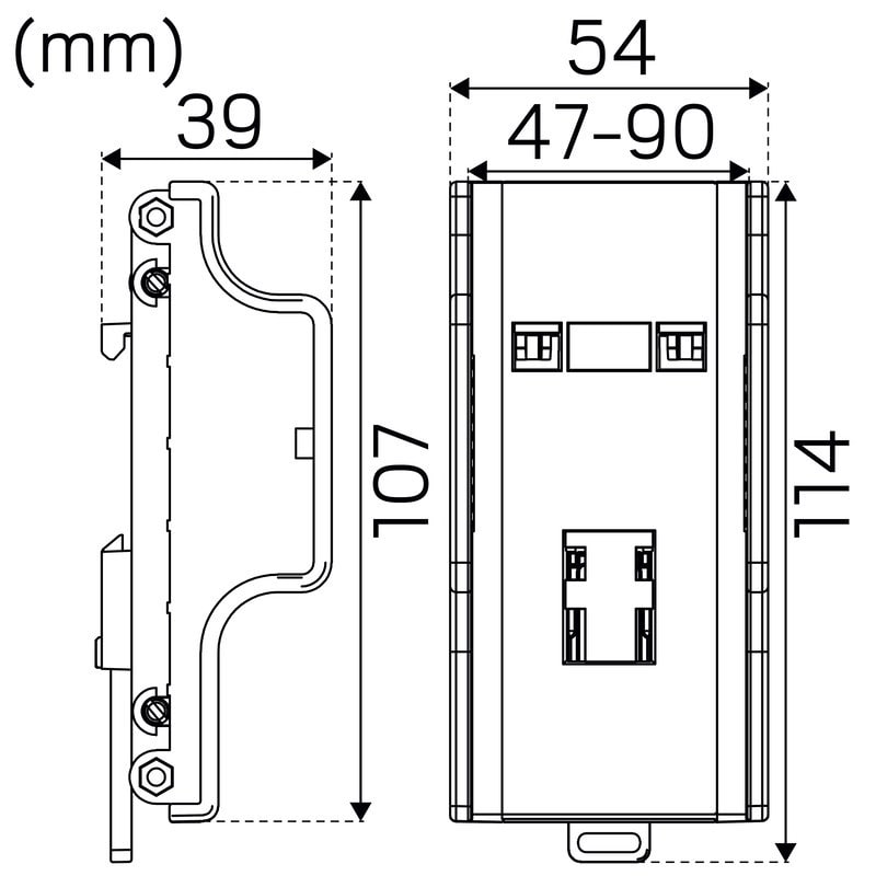 Liitäntälaitteen kiinnike DIN. jousipuristeinen (47-90mm). Liitäntälaitteen asennukseen DIN-kiskoon.