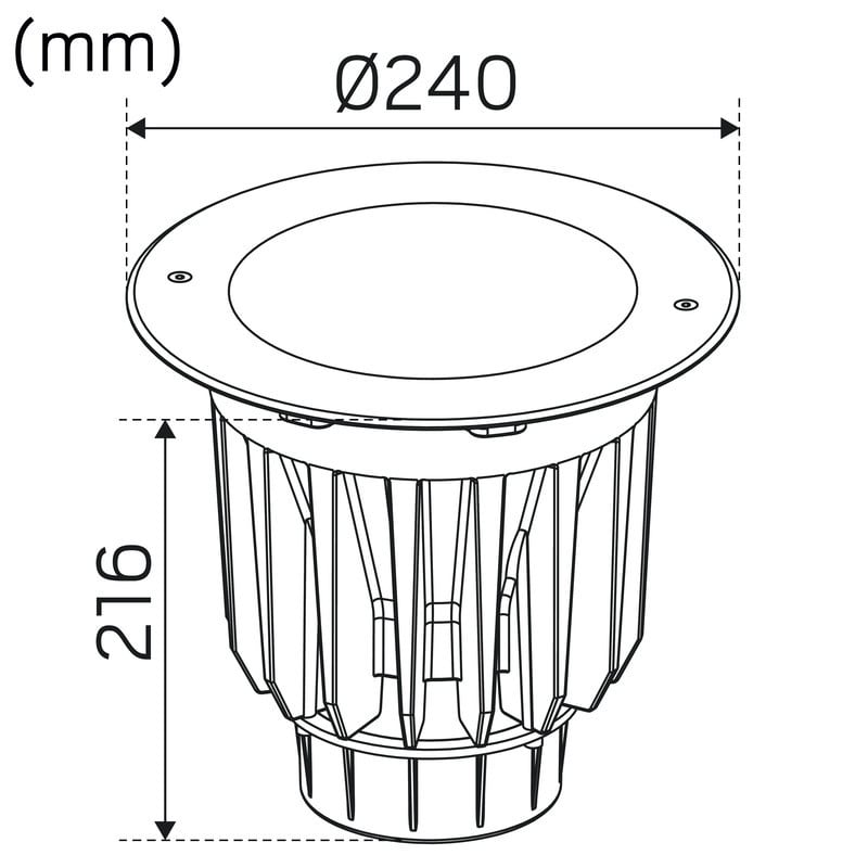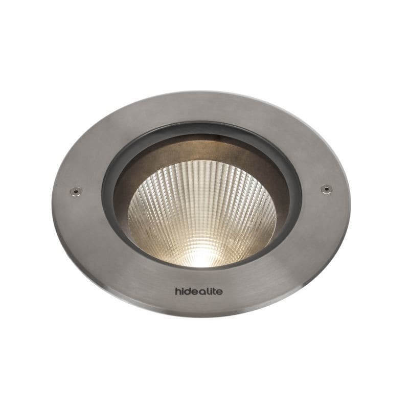 Energiatehokas maavalaisin julkisiin tiloihin. Sopii erinomaisesti esimerkiksi puistoihin, areenoille ja teollisuuskiinteistöihin. Upotettu, uudenaikaisella heijastintekniikalla varustettu LED-siru (COB) tuottaa säteilevän ja häikäisemättömän symmetrisen valon. Valaisinrunko valualumiinia, ulkorengas ruostumatonta terästä (316) ja karkaistu suojalasi. Asennus maahan tai valuun mukana tulevalla asennuskotelolla. Toimitetaan asennusvalmiina sisäänrakennetulla ohjaimella, 2 metrin kumikaapelilla sekä asennuskotelolla.