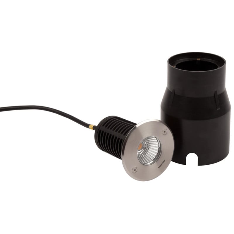 Tyylipuhdas, energiatehokas maavalaisin puutarhaan ja rakennusten valaisuun. Multichip-tekniikka ja heijastinoptiikka tuottavat erittäin laadukasta valoa. Valaisinrunko valualumiinia, ulkorengas ruostumatonta terästä (316) ja karkaistu suojalasi. Asennus maahan asennuskotelolla. Toimitetaan täydellisenä: sisäänrakennettu ohjain, 2m kumikaapeli sekä asennuskotelo. Elinikä: (L70) 50 000h.