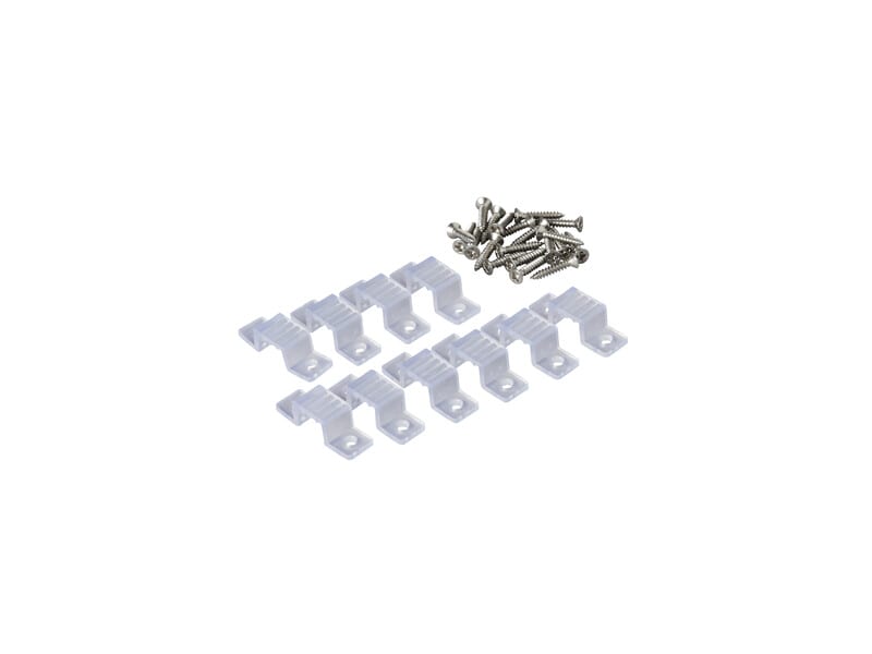 Lisävarusteena klipsit, joilla kiinnität helposti LED-nauhasi. Sopii LED-nauhaan 24V IP67 TW ja RGB, sisältäen ruuvit. 10kpl.