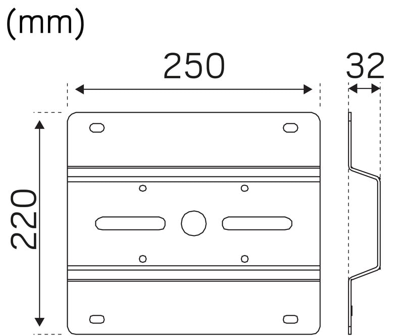 Vahvistaa alustaa ja jakaa painoa asennettaessa esim. ohuille peltijulkisivuille tai kevytbetoniseinille. Valmiit reiät valaisimen kiinnitystä varten.