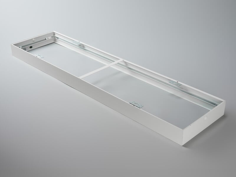 Korotuskehys Skylite LED-paneelin pinta-asennukseen, valkoiseksi maalattua alumiiniprofiilia. Korotuskehyksessä on tilaa sekä paneelille että liitäntälaitteelle. Valmiiksi läpiviennit pinta-asennettaville kaapeleille.