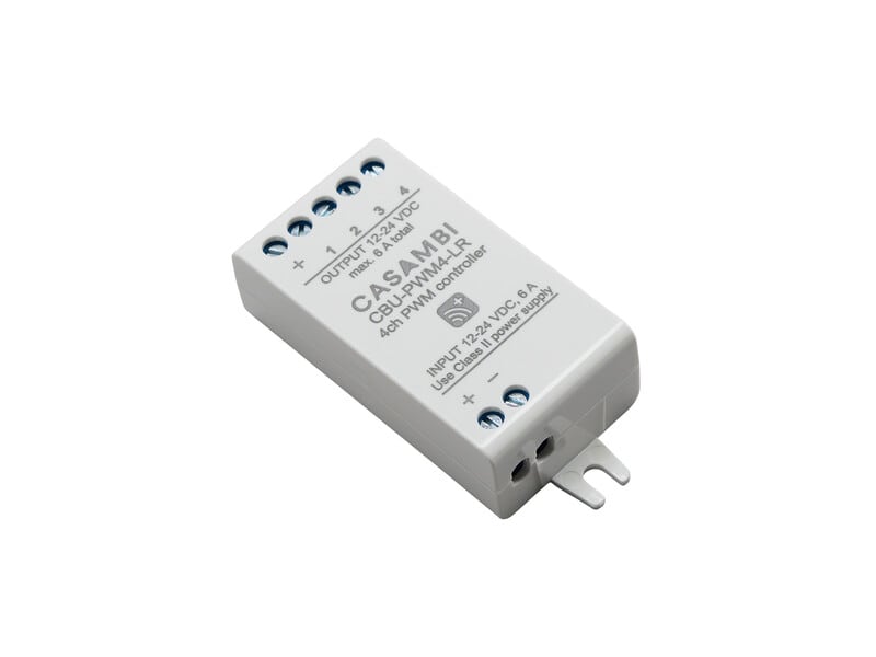 Joustava langaton ohjausmoduuli. Casambi PWM4-LR, neljä itsenäistä lähtöä Single Color-, RGB-, RGBW- ja TW-ohjaamiseen. Tehokas ja joustava moduuli erilaisten valaistusratkaisujen langattomaan ohjaukseen. PWM4-LR tarjoaa neljä itsenäistä lähtöä yksiväristen, RGB-, RGBW- tai säädettävän valkoisen (Tunable White) LED-nauhojen ohjaukseen. Teho voidaan jakaa vapaasti neljän kanavan kesken. Suurin kuormitus on 6 A. Monipuoliset moduulit sopivat sekä uusiin asennuksiin että päivityksiin, joissa langaton ohjaus, joustavuus ja yhteensopivuus ovat tärkeitä.