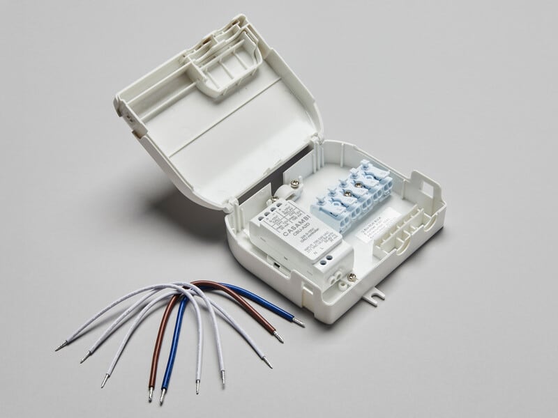 Q-Box Multi Casambi A2D, IP20-luokiteltu helposti asennettava Q-BX älylaitteille. Sisältää Casambi A2D -moduulin. 108x110x32mm. Q-Box Multi on kytkentärasiamme, joka on valmiiksi varustettu nopeaan Casambi-liitäntään ja valaistuksen ohjaukseen – saat täyden hallinnan valaistukseen helposti sovelluksen kautta. Kotelo on IP20-luokiteltu ja tarkoitettu asennettavaksi alaslasketun katon yläpuolelle tai pinta-asennukseen sisätiloissa. Rasian voi kiinnittää ruuvilla mihin tahansa pintaan. Toimitukseen sisältyy valmiiksi asennettu Casambi A2D -moduuli ja kaapelit, jotka helpottavat liitäntää liittimen ja moduulin välillä. Vedonpoisto sekä kaapeleille että suojaputkille, loop-in loop-out -kytkentä. A2D muuntaa analogiset painike- tai liiketunnistinsignaalit Casambi-komennoiksi, ja mahdollistaa olemassa olevien painikkeiden ja tunnistimien integroinnin Casambi-verkkoon. Laite voidaan myös liittää DALI-ohjaimiin yksinkertaista ohjausta varten (20 mA DALI-väylään).