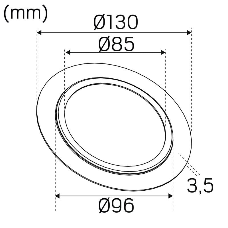 Kehys enintään Ø125 mm reikiin. sopii valaisimiin. joiden asennusaukon koko on enintään Ø85 mm. Ilman jousia.