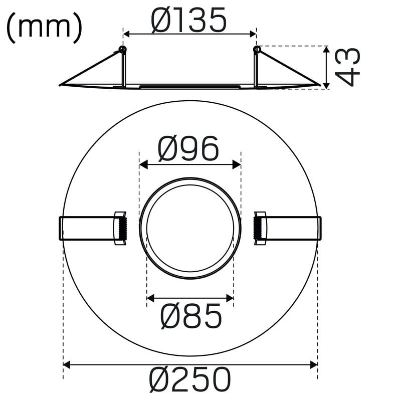 Kehys jopa 245mm reikäkokoon. Soveltuu valaisimille 85mm reikäkokoon asti. maksimi halkaisija 96mm. Kehys auttaa. kun haluatvaihtaa vanhat halogeeni- ja pienloistelamput. mutta reiän koko ei täsmää. Kattoa ei tarvitse käsitellä tai uusia.