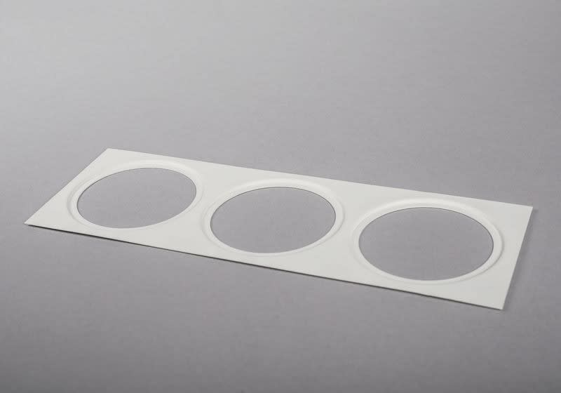 Koristekehys alasvaloille. muokkaa pyöreästä valaisimesta nelikulmainen. Kolmelle valaisimelle. joiden asennusaukon koko onenintään Ø85 mm