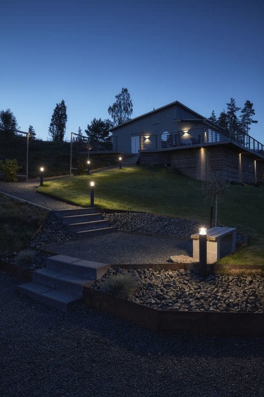 Sylinterimäinen pylväsvalaisin, IP65-luokiteltu. Valaisin antaa tehokkaan, häikäisemättömän, ympärisäteilevän ja alas suunnatun valokuvion 150° valokeilalla. Puutarhan, kulkuväylän ja terassin valaistukseen. Valaisinrunko alumiinia, anodisoitu ja pulverimaalattu kestämään pohjoismainen ilmasto. Mataksi hiekkapuhallettu pinta. Sisäänrakennettu ohjain erillisellä pikaliittimellä ketjutuspaikkoineen 230V liitäntään. Mukana täydellinen sarja betoniin valamista varten.
