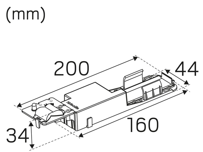 Hätävalomoduuli ja paristo. Asennetaan mukana tulevalla ruuvilla. Valaisimet voidaan jälkikäteen täydentää hätävalomoduulilla säilyttäen normaalin tehon ja ohjaustoiminnon. Hätävalomoduuli on varustettu automaattisella itsetestauksella ja osoittaa tilan vihreällä tai punaisella LEDillä. Tuottaa valoa 1,5 tunnin ajan sähkökatkoksen yhteydessä