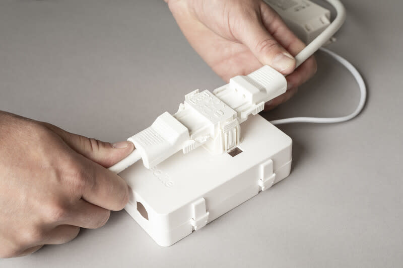 Kytkentärasia tarjoaa helpon ja työkaluttoman asennuksen 3-napaisella pikaliitännällä ketjutusta varten sekä ruuvittoman vedonpoiston johdolle tai 16mm suojaputkelle. Valmius yleiseen Linect 3-napaiseen pikaliitinjärjestelmään, samoin yhteensopiva muiden yleisten markkinoilla olevien pikaliitinjärjestelmien kanssa, kuten Wieland, Ensto, Wago/Winsta.
