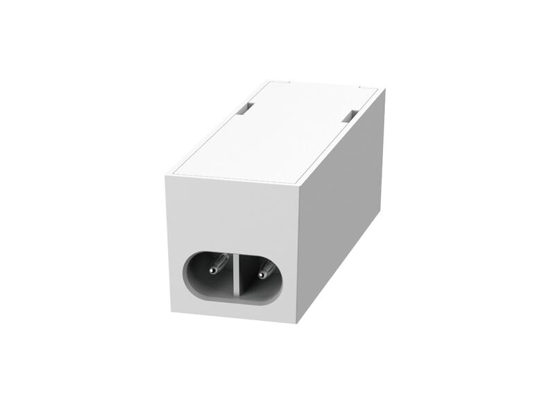 Flexline-liitin ilman kytkintä, naaras, valkoinen. Tarvike Flexline-sarjaan. Flexline-liitin virtajohdon kytkemiseen, ilman kytkintä, naarasliitin, valkoinen. Tarvike Flexline-sarjaan.