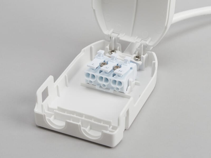 Pieni liitäntärasia sisäkäyttöön, halogeenivapaata valkoista muovia. Pikaliitäntärimat (0,5–2,5 mm²) ohjaimen kytkentään/ketjutukseen, asennus täysin ilman työkaluja. Ruuviton vedonpoisto, helppo kaapelien ketjutusmahdollisuus ja taipuisa 16mm suojaputki mahdollistavat huoltoystävällisen asennuksen. Q-box Micro saatavana 3- ja 5-napaisena mallina.