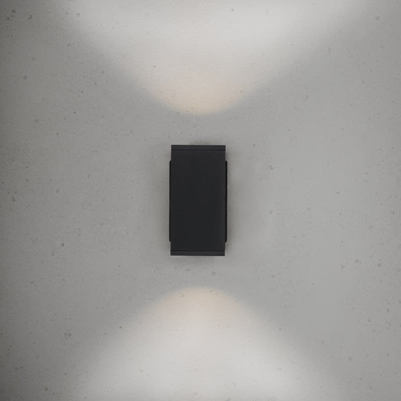 Suorakulmainen seinävalaisin integroidulla vaihehimmennettävällä ohjaimella, valoaukot ylös- ja alaspäin. Valaise julkisivu, luo miellyttävä vaikutelma sisääntuloon ja himmennä valo helposti halutulle tasolle. IP65-luokiteltu valaisin vaativiin olosuhteisiin ulos. Helppo asennus erillisellä taustakappaleella, kahdella läpiviennillä ja ketjutettavalla pikaliittimellä, suora 230V liitäntä. Mukana korokkeet kaapelin pinta-asennusta varten. Himmennettävissä markkinoiden tavallisimmilla himmentimillä.