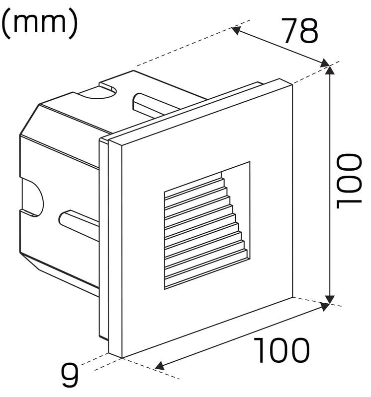 Tehostevalaistus multichip-tekniikalla, uppoasennukseen seinään. Tyylipuhdas muotoilu. Valaisin on tarkoitettu kulkuväylien, aitojen ja portaiden osoittamiseen ja valaisuun. Sisäänrakennettu ohjain suoraan 230V liitäntään. IP65-luokitus, sopii sisä- ja ulkokäyttöön, 3000K. Lisävarusteena saatavana kolme eri kupuvaihtoehtoa, joilla voit helposti muokata valaisimen ulkonäköä ja valokuviota. HUOM, upotusmitta riippuu asennustavasta, noudata käyttöohjetta. Mukana muovinen asennuskotelo.