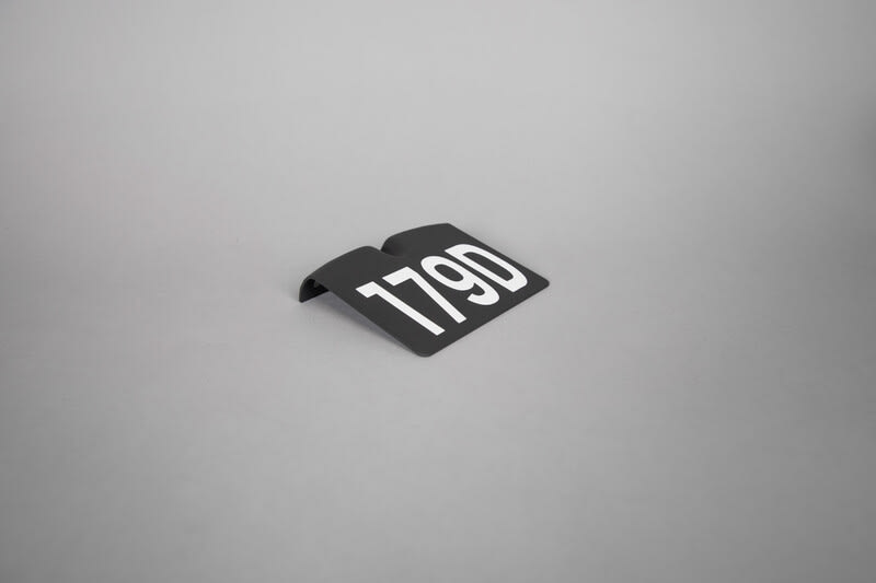 Pave Wall numerokilpi antrasiitti. Mukana valkoiset tarralaput (3x 0-9ja 3x A-J).
