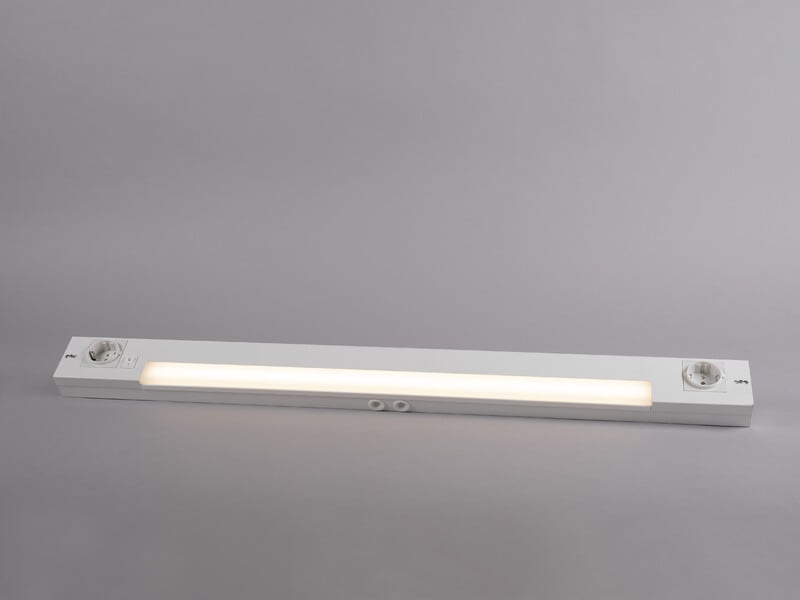 Himmennettävä kaapinalusvalaisin lineaarisella valolla. Pituus 880mm ja pistorasia molemmilla sivuilla. Täydellinen korvaaja loisteputkivalaisimille tai uudisasennuksessa. Huurrettu valoaukko kahteen suuntaan, valaisee sekä työtason että seinän. Valinnainen värilämpötila DIP-kytkimellä. Valaisimessa On/Off-katkaisin, voidaan himmentää ulkoisella himmentimellä. Helppo asennus ruuveilla, hyvin tilaa, avainreikäasennus sekä kaapelin läpivienti sekä lyhyessä että pitkässä sivussa. Valaistusta ja pistorasiaa voidaan ohjata erikseen.