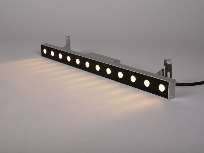 Kapean valokeilan wallwasher-valaisin julkisiin tiloihin. Valovirta ulottuu jopa 25 metrin korkeuteen. Soveltuu korkeiden julkisivujen, kylttien ja teollisuuskiinteistöjen valaisemiseen, mielenkiintoisten yksityiskohtien saamiseen aikaan sekä epäsuoraan valaisemiseen. IP65-luokitus sekä anodisoitu ja jauhemaalattu valaisinrunko koviin sääolosuhteisiin. Himmeän hopeanharmaa. Valaisimen kiinnikettä voidaan kääntää 170 astetta. Mukana sisäänrakennettu 230 voltin jännitteeseen yhdistettävä liitäntälaite ja 2 metrin kumikaapeli.