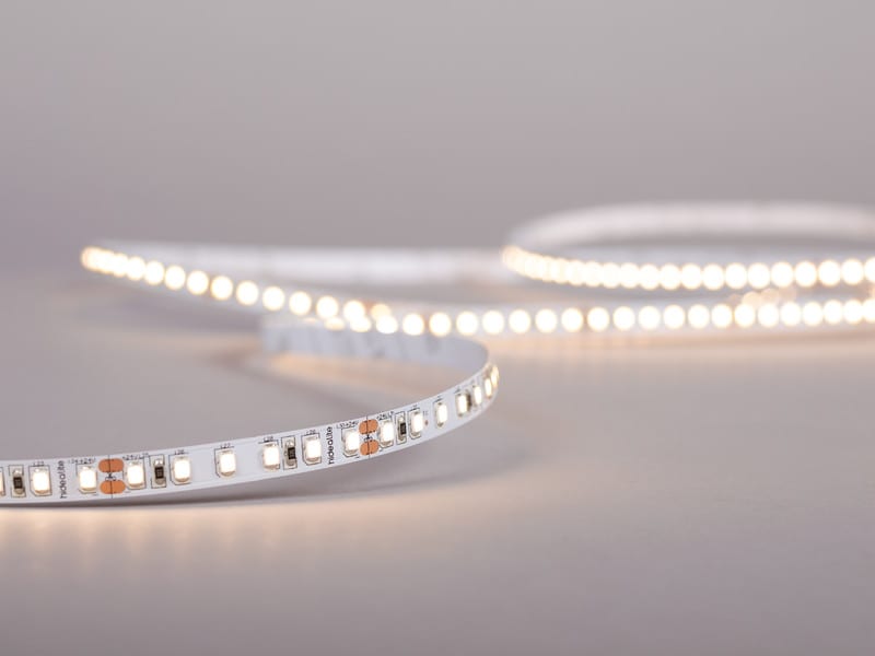 24 voltin LEDstrip-perusversio. 120 LEDiä metriä kohden varmistaa suuren valon määrän ja tehon. Lyhyempi diodien välinen etäisyys tuottaa yhdenmukaisen valon. Erittäin hyvä värintoisto, Ra>90. Myydään metritavarana. Tuote ei vakiona sisällä liitosjohtoa tai muita tarvikkeita. Tilattava erikseen. Mukana itsekiinnittyvä teippi, 2 metrin liitosjohto, 1 metrin jatkoliitosjohto ja 2 pikaliitäntää. Katkaisuväli 50 mm välein, enimmäispituus 10 metriä. Ohjain tilataan erikseen sijoituspaikan ja halutun himmennystekniikan mukaan.