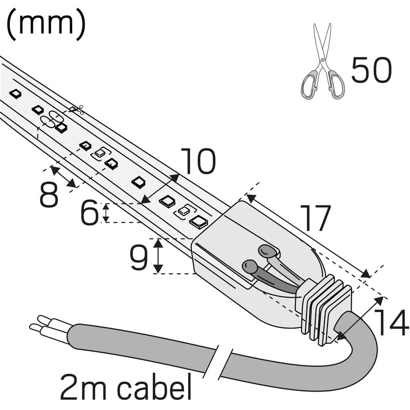 24 voltin LEDstrip-perusversio. 120 LEDiä metriä kohden varmistaa suuren valon määrän ja tehon. Lyhyempi diodien välinen etäisyys tuottaa yhdenmukaisen valon. Erittäin hyvä värintoisto, Ra>90. Myydään metritavarana. Tuote ei vakiona sisällä liitosjohtoa tai muita tarvikkeita. Tilattava erikseen. Mukana itsekiinnittyvä teippi, 2 metrin liitosjohto, 1 metrin jatkoliitosjohto ja 2 pikaliitäntää. Katkaisuväli 50 mm välein, enimmäispituus 10 metriä. Ohjain tilataan erikseen sijoituspaikan ja halutun himmennystekniikan mukaan.