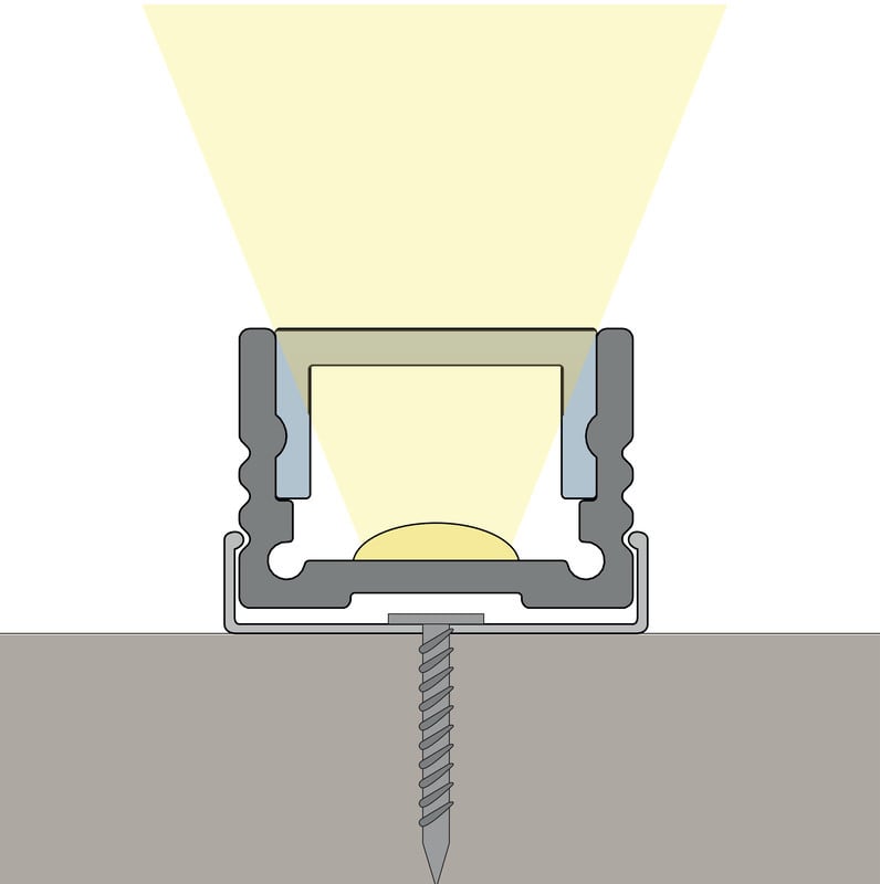 Alumiininen U-profiili, joka helpottaa asennusta ja lisää joustavien LED-nauhojen käyttömahdollisuuksia, 13 mm leveyteen asti. Tuottaa hyvän valaistuksen hyllyjen ja kaappien alle. Profiili tehostaa jäähdytystä, kupu antaa lisäsuojan ja mahdollisuuden vaihdella valokuviota sekä tarvittaessa hyvän varjostuksen. Profiili voidaan täydentää suoralla kuvulla, kirkas tai huurrettu. Kiinnitetään metallikiinnikkeillä, myös 45° kulmakiinnike. Päätetään alumiini- tai muovipäädyillä.