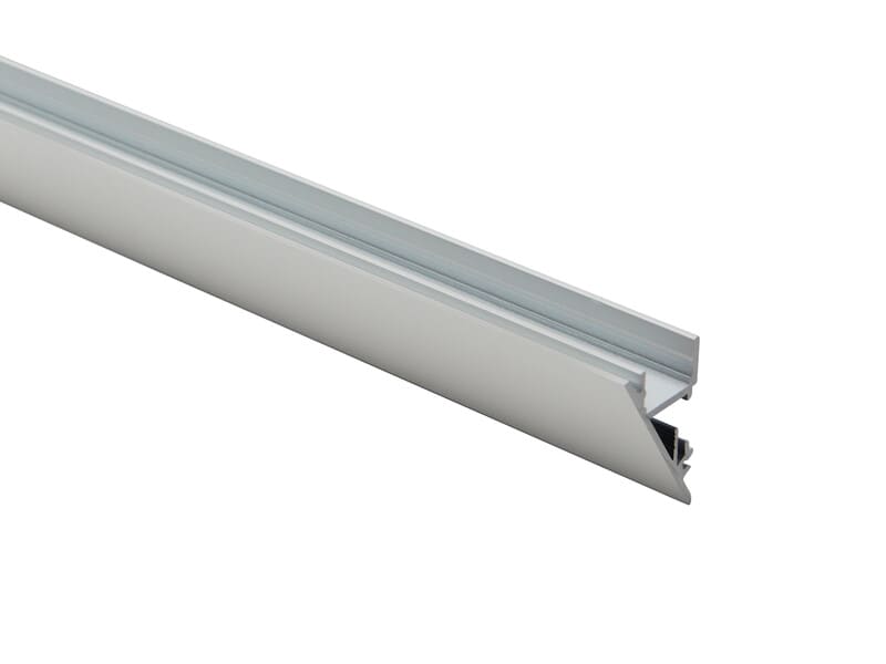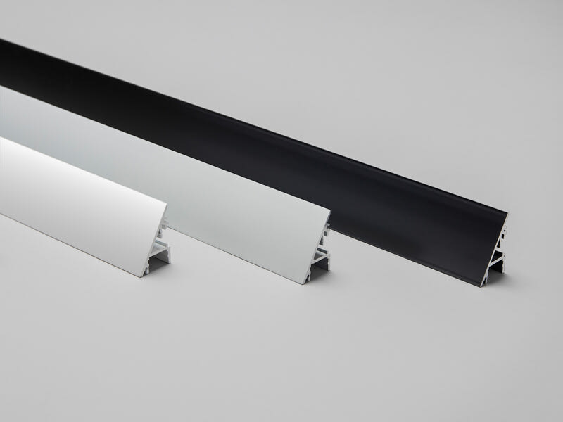 Valkoinen alumiiniprofiili tehostevalaisuun. Profiili asennetaan seinäpinnalle ylös-/alasvaloksi, täydennä suojakannella. Kiilamainen profiili, joka luo pehmeän valotehosteen. Voidaan käyttää ylä- ja alavalona tai sivusuuntaisena valona kulmissa. Profiilissa on tilaa sisäiselle kaapeloinnille, mikä nopeuttaa asennusta ja avaa lisää asennusmahdollisuuksia. Pintaan asennettava profiili luo koristeellisen valoviivan.