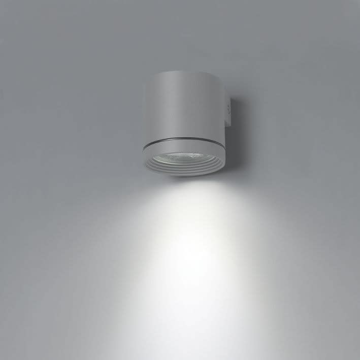 Seinävalaisin alas suunnatulla valolla, IP54-malli, julkisivujen, sisäänkäyntien jne. tehostevalaistukseen. Valaisinkotelo alumiinia, korroosionestokäsitelty ja maalattu kahdella polyesteripohjaisella jauhemaalikerroksella. Mattamusta, valkoinen tai harmaa hiekkapuhallettu viimeistely. Seinälle kiinnitettäväksi sisällä tai ulkona, piilotettu liitäntä. Toimitetaan GU10-kannalla vaihtoehtoisille valonlähteille suoraa 230 V kytkentää varten.