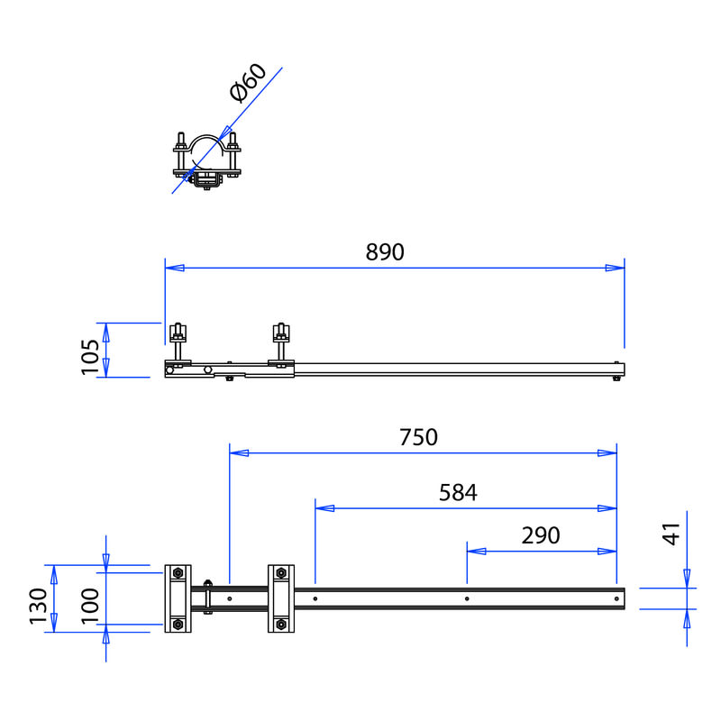 Putkikiinnike 6065Korvakkeet kuumasinkittyä terästä, orsiosa sähkösinkittyä polyesteripinnoitettua terästä.