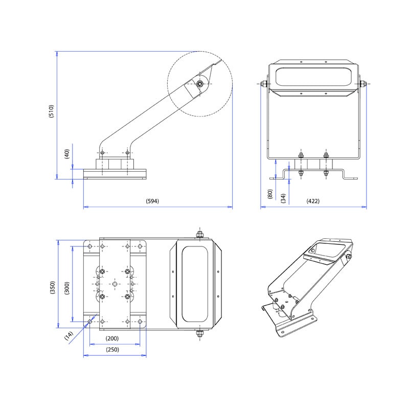 X122 Valonheitinkiinnike jalustalla ja tärinänvaimenninkumeilla