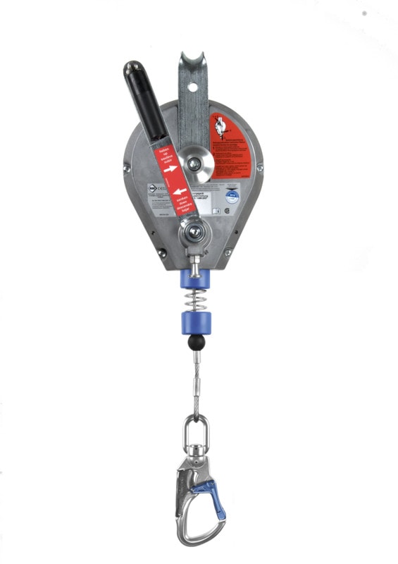 Tajuntansa menettänyt työpari voidaan nostaa nopeasti ja turvallisesti esim. suljetussa tilassa olevan kaasun yläpuolelle tai pois ahtaasta tilasta. Kelan sisällä integroitu nykäyksenvaimennin, joka rajoittaa käyttäjään kohdistuvia nykäysvoimia putoamisen pysäyttämisessä. Kuori alumiinia, liitoselin vaijeri. Vaijeri varustettu automaattisesti lukkiutuvalla liitoskarabiinilla. Käyttäjän alta vaadittava esteistä vapaa turvaetäisyys, kun laite on kiinnitetty suoraan käyttäjän yläpuolelle: 2,4 m. Paino 7,0 kg. Ulkomitat: 450x195x180mm. CE DIN EN360/1496. Tarkastustoiminta nopeasti Suomessa. Käyttöikä 10 vuotta.