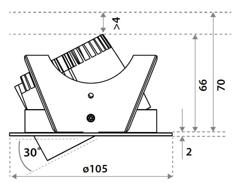 Kotelointiluokka: Kiinteät mallit alapuolelta IP44 suljetussa kattorakenteessa, suunnattavat IP20