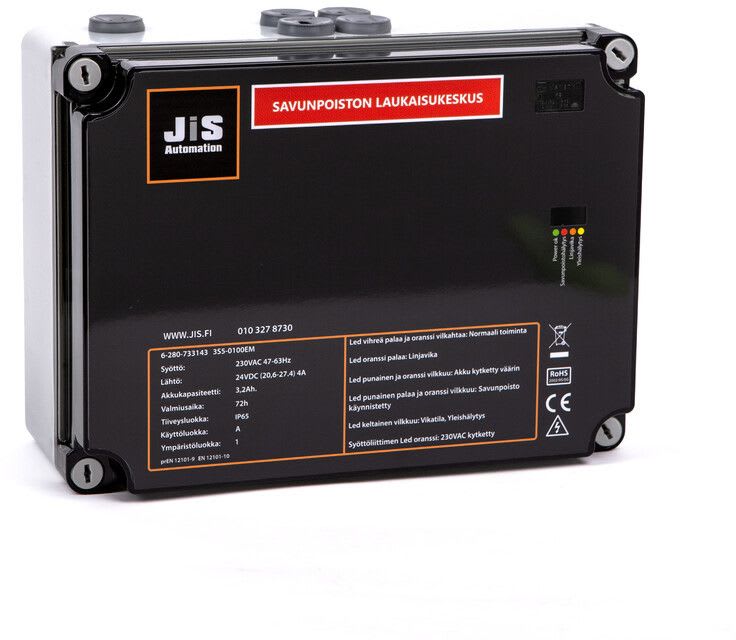 Kotimaisilla, akkuvarmennetuilla 3S5-01XX-sarjan savun poistokeskuksilla ja niiden lisälaitteilla ohjataan seinä- ja lasikateikkunoiden sekä erilaisten luukkujen savunpoisto, korvausilma ja tuuletuskäyttöjä. Keskuksien käyttölämpötila on -10 – +40 °C. Vakiokeskukset ovat 1...6 -piirisiä ja niihin voidaan kytkeä 24 VDC avausmoottoreita enintään 20 ampeerin nimellisvirtaa vastaava määrä / keskus. Ohjattaviksi soveltuvat lähes kaikki 24 VDC jännitteellä toimivat avaajat, virran sallimissa rajoissa.