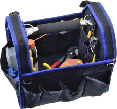 Työkalut on pakattu tukevaan ja kestävään Jonardin H-90 työkalulaukkuun, johon mahtuu mukavasti työkaluja ja tarvikkeita.