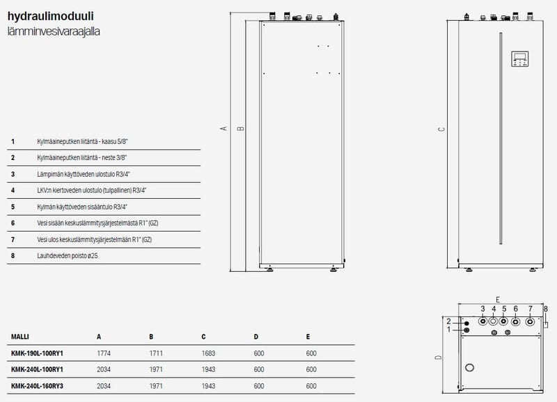 KAISAI KHA-12RY3/KMK-240L-160RY3 ulko ja sisäyksikkö duo 240L Ilma-vesilämpöpumppu hyödyntää ilmassa olevaa ilmaista energiaa ja käyttää sitä rakennuksen lämmittämiseen tai jäähdyttämiseen sekä lämpimän käyttöveden valmistamiseen. Se on halpa, ekologinen, luotettava ja kaikkien ulottuvilla oleva lämmönlähde.