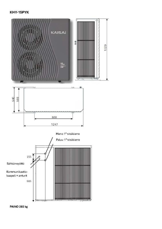 KAISAI - Ilma-/vesilämpöpumppu - MONOBLOCK R290 15KW