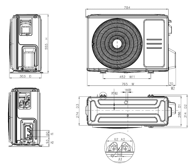 Ulkoyksikön leveys: