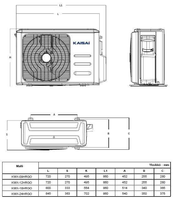- Ulkoyksikön mitat 800x554x333mm