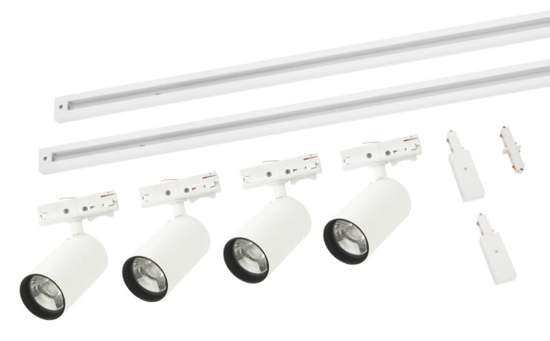 - Sisältää 2 kpl 1m 2-vaihe kisko, 4 kpl valkoisia kohdevalaisimia GU10 kannalla
