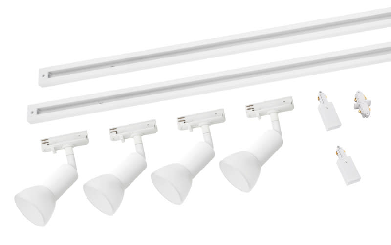 - Sisältää 2x1m 2-vaihe kisko, 4 kpl 5W Vetro LED COB valaisimia