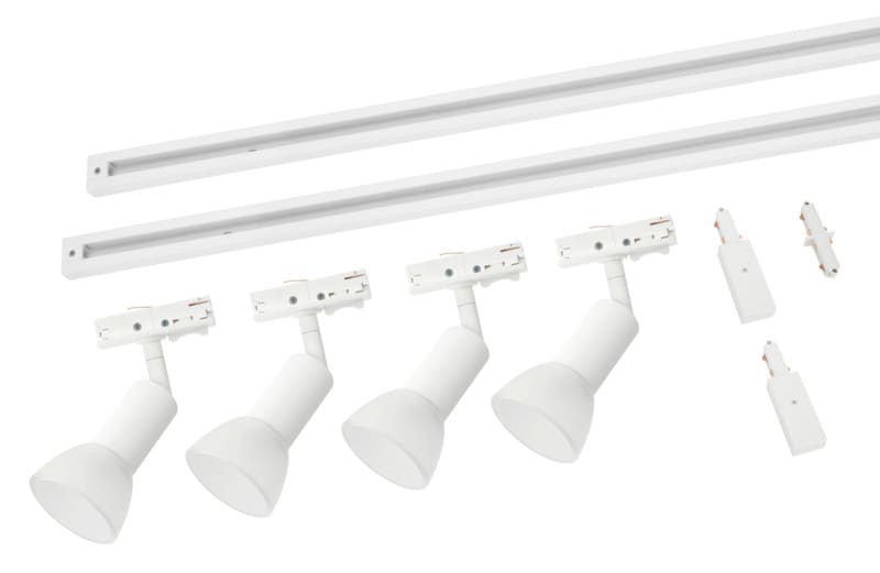 - Sisältää 2 kpl 1m 2-vaihe kisko, 4 kpl kohdevalaisimia GU10 kannalla