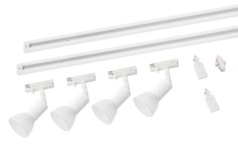 - Sisältää 2x1m kisko, 4 kpl 5W VETRO LED COB valaisimia
