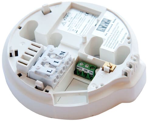 KI-RBN on verkkojännite toiminen relekanta, joka on tarkoitettu korvaamaan KI-11 sarjan verkkojännite lämpö- ja palovaroittimien mukana toimitettava asennuskanta.