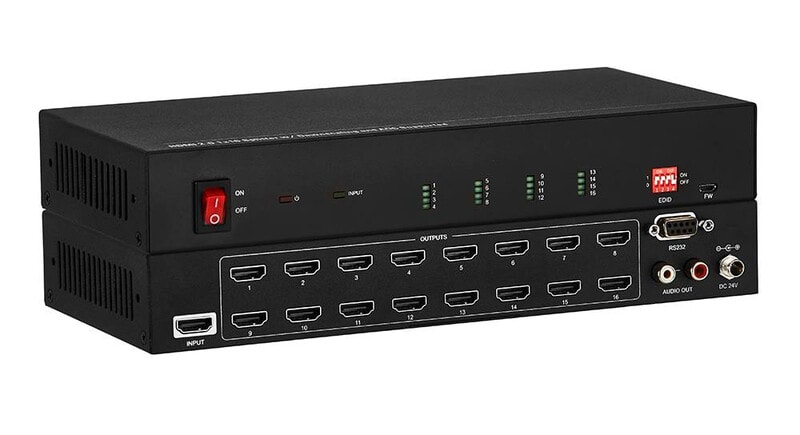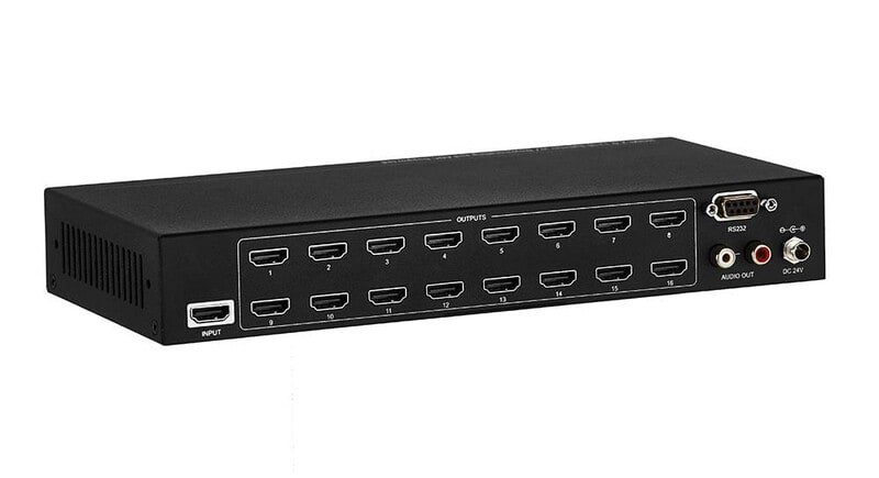 Täydellinen esimerkiksi kirkkoihin, ostoskeskuksiin ja ravintoloihin, joissa yksi HDMI-laite halutaan jakaa 16 näyttöön.