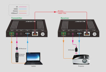 - UltraSlim-pistekohtainen HDMI-laajenninpari HDBaseT:n yli