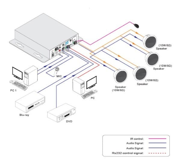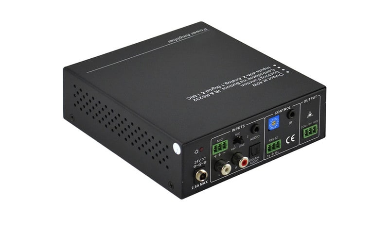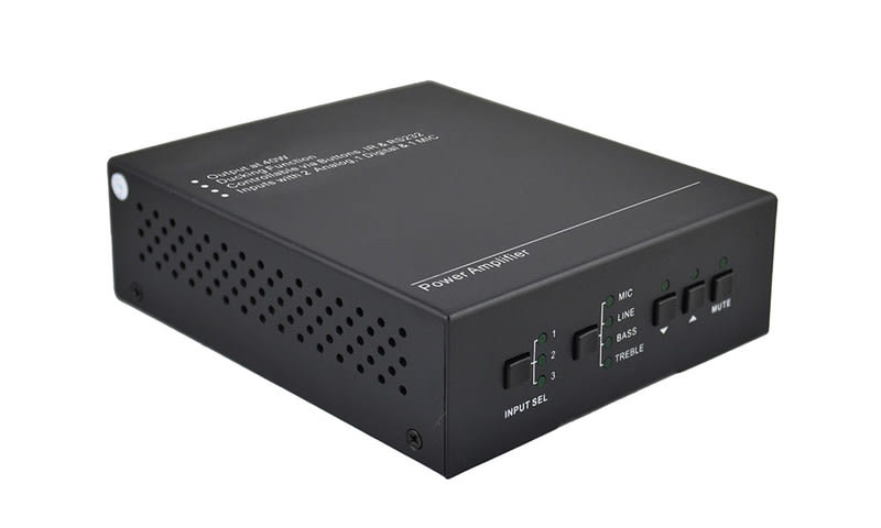 KanexPro AP3DBL on 3-tuloinen 40-wattinen vahvistin, joka tukee myös 70V tai 100V.