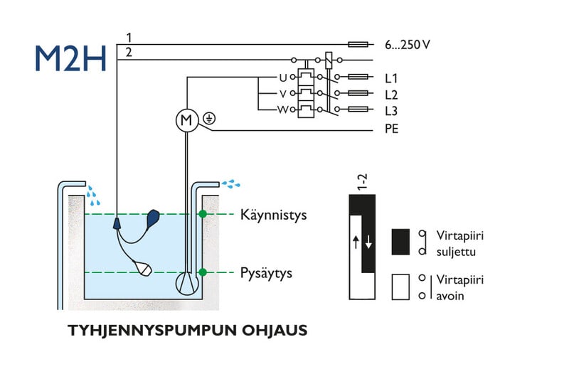 Tyhjennyspumpun ohjaus. 5 m PVC-kaapeli