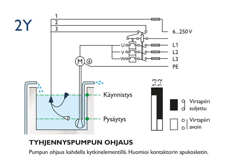 Tyhjennyspumpun ohjaus. 5 m PVC-kaapeli